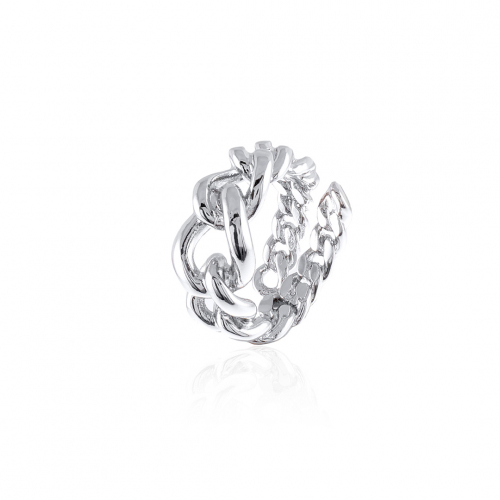 Anello aperto di catena grumetta scalare, Materiale: Bronzo Colore: Argento