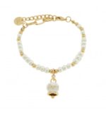 Braccialetto da donna realizzato in metallo dorato e perline.