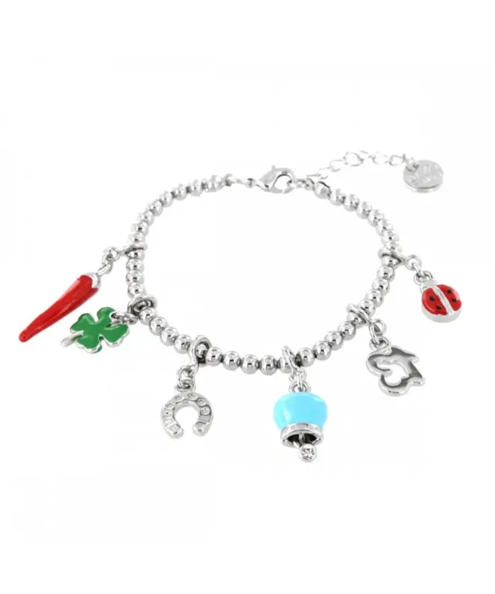 Bracciale in Metallo con corno napoletano, quadrifoglio, coccinella, campana capri