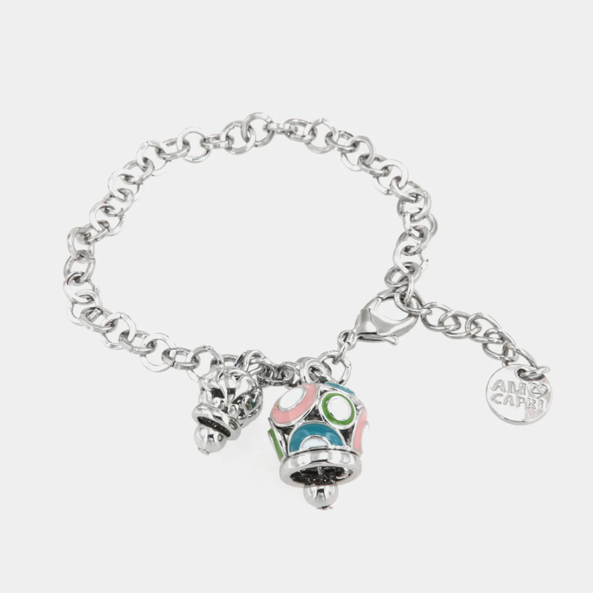 Bracciale in Metallo con campana colorata e piccola campanella con cuori