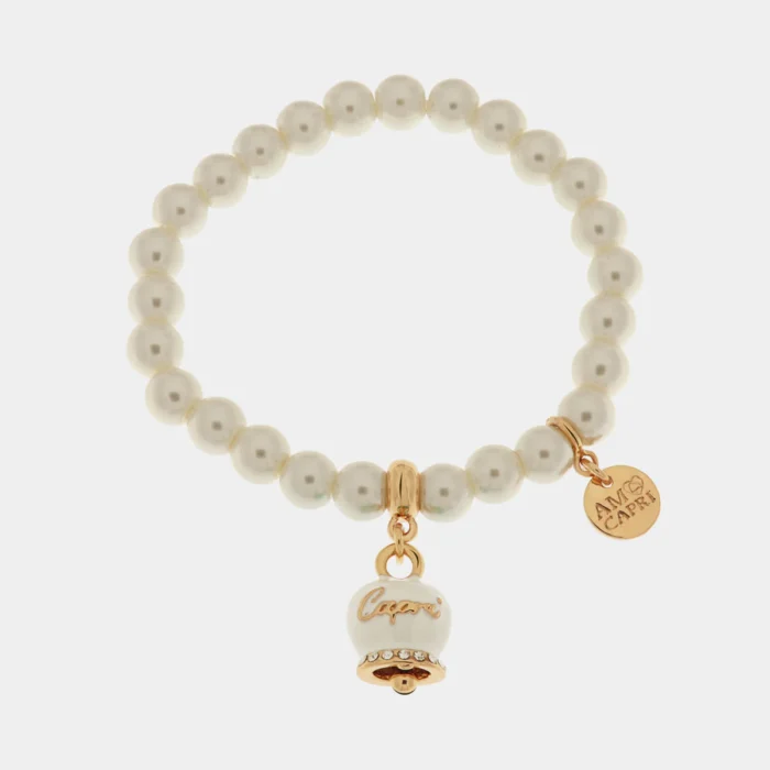 Bracciale in Metallo Bracciale in Metallo con perle e campanella portafortuna in smalto bianco con scritta Capri