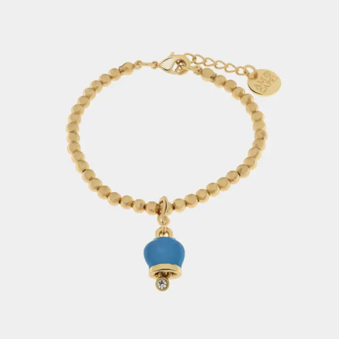 Bracciale in Metallo maglia a sfere con campanella portafortuna pendente impreziosita da cristalli