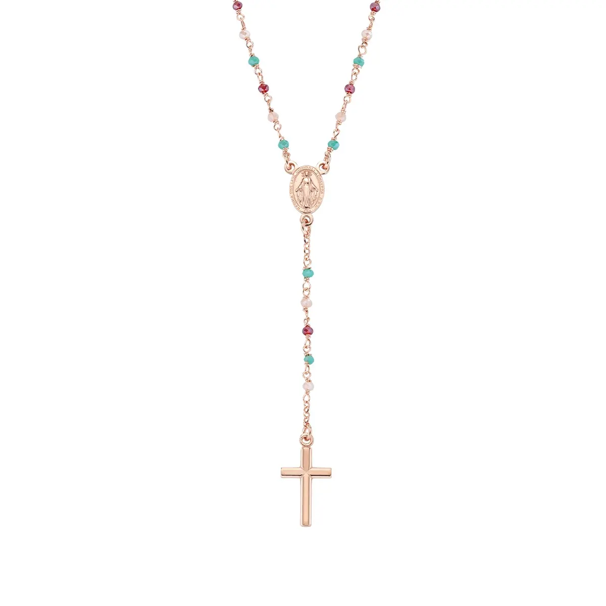 Collana Argento 925 e cristalli multicolor verde rosso rosa – Rosè – Lunghezza 48 cm + 4 cm