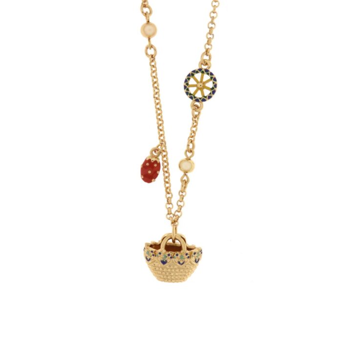 Collana da donna BySimon in Metallo placcato oro della collezione Amo Capri, con coffa impreziosita da ruota e cactus, smalti e cristalli.